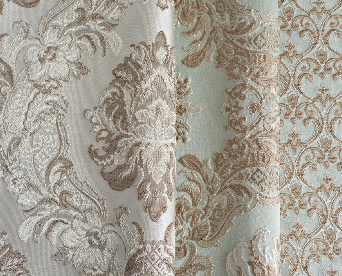Это плотная и прочная ткань со сложными вышитыми рисунками. Многослойный, объемный узор.